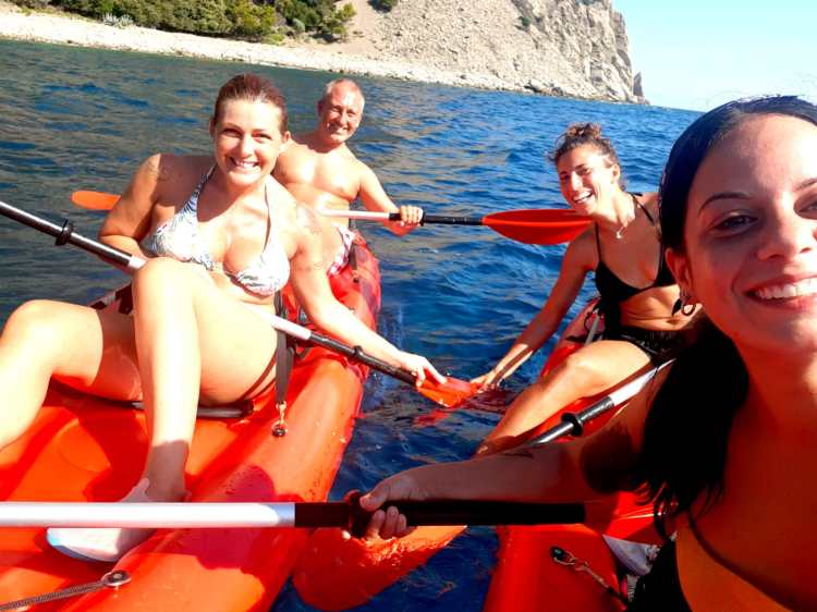 My family loved this kayak tour! The provided amenities were supremely helpful- a changing room, a waterproof bag, and they locked up our backpack. The rowing was tiring, but very worth it. The views, the information, and the snorkeling were fantastic. We had been touring around Italy for many days, and it was delightful to be off our feet for a change!